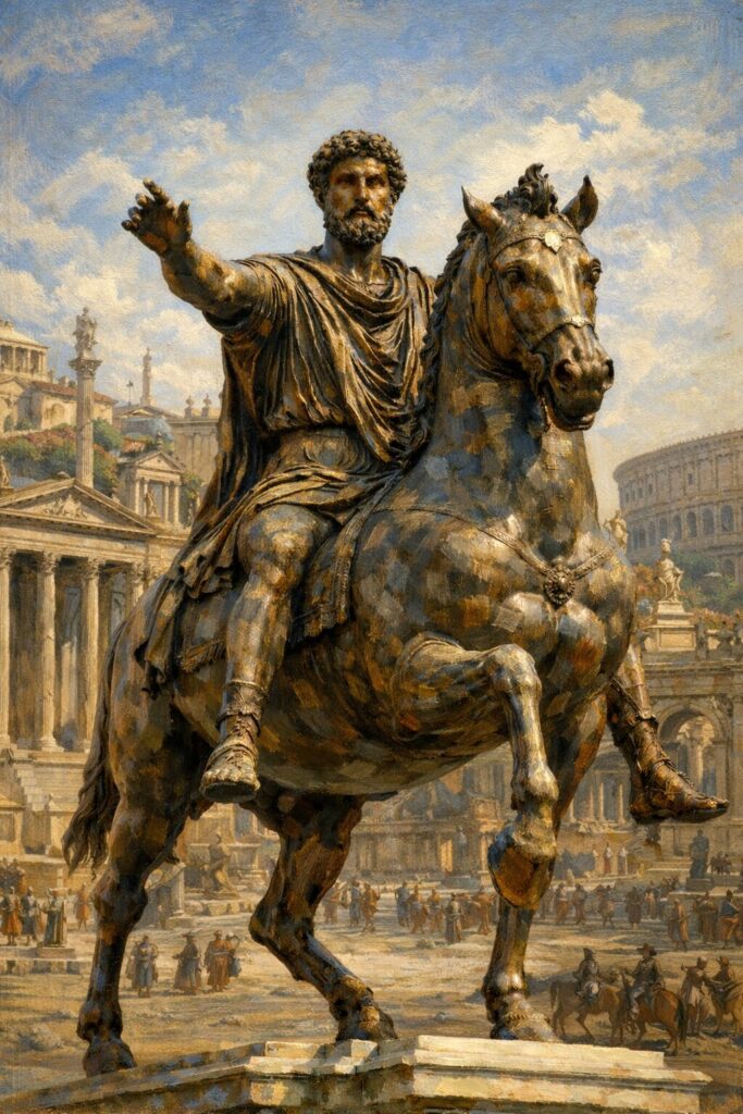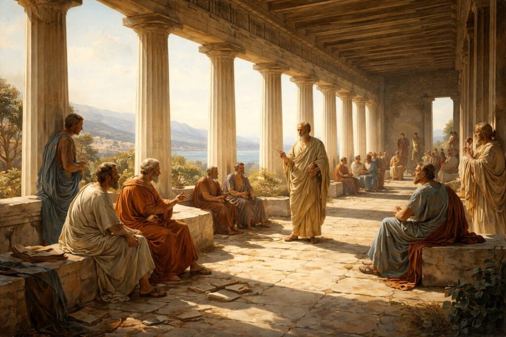 Bij de Romeinse stoïcijnen — tussen circa 50 n.Chr. en de tweede eeuw — verschoof de aandacht van het individu naar de samenleving. Ze benadrukten dat alle mensen, inclusief slaven en barbaren, bezield zijn met dezelfde goddelijke rede. Dat idee van universele verbondenheid en naastenliefde was in die tijd ronduit revolutionair. Marcus Aurelius, de keizer-filosoof, schreef dat ieder mens een klein stukje van het goddelijke in zich draagt. Daarom moest men zich niet ergeren of afkeren, maar met waardigheid verdragen wat het lot brengt.
