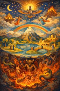De eerste sporen van het blauwe waardesysteem vinden we al terug bij het zoroastrisme. Tussen 1400 en 1200 v. Chr. leefde de Perzische priester Zoroaster. Hij zag veel geweld en lijden om zich heen. Vervolgens kreeg hij een visioen aan de oever van de rivier de Oxus van Ahura Mazda, de Wijze Heer. Deze heeft de wereld geschapen en is de god van het licht. Helaas sloop er ook duisternis in zijn schepping door de god (?) van het kwaad Ahriman. De wereld is dualistisch, iets is ofwel goed of kwaad. Dit was de eerste stap richting monotheisme. Alle mensen hebben een ziel en hiermee het vermogen om tussen goed en kwaad te kunnen kiezen. Wanneer je sterft wordt je leven beoordeeld en mag je opstijgen naar de hemel, afdalen naar de hel of achterblijven in een soort niks. Het voorspelt de komst van een profeet. En ook het einde van de wereld, waarin de goede mensen opstijgen en de slechte achterblijven en verzwolgen worden. Door de opkomst van de islam zijn het aantal aanhangers verminderd. De grootste groep zijn destijds gevluchte Parsi die in India wonen.